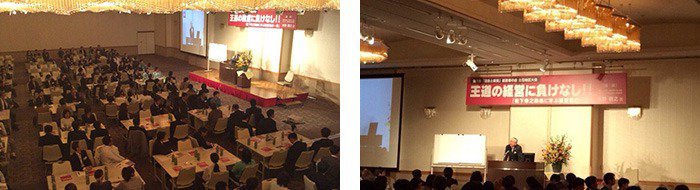 平成26年11月14日(金)、福井商工会議所コンベンションホールにて第7回「理念と経営」経営者の会 北陸地区 福井大会が行われました。福井大会のテーマは「王道の経営に負けなし!」と題し、松下幸之助翁に学ぶ経営者の一念を学びさせていただきました。当日は240名の方々に参加いただきましたが、仕事が終わった後、会場へ足を運んでいただいたことに改めて心から感謝しお礼申し上げます。