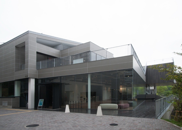 2022年2月竣工した「明窓館」。講演会やイベントに使用できる大ホールや、大型ギャラリー、学内での国際交流を促進するグローバルラウンジなどがあり、学生たちが異文化に触れ、新しい価値観を学べる京都精華大学の中心的施設だ