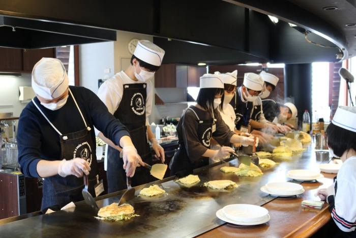 本社から徒歩3分の場所にある「Wood Eggお好み焼き館」。お好み焼きの歴史や同社創業のきっかけ、経営理念などを学ぶことができ、お好み焼きづくりも体験できる