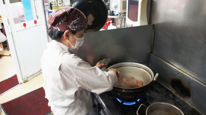 煮炊きを行うシニアスタッフの様子