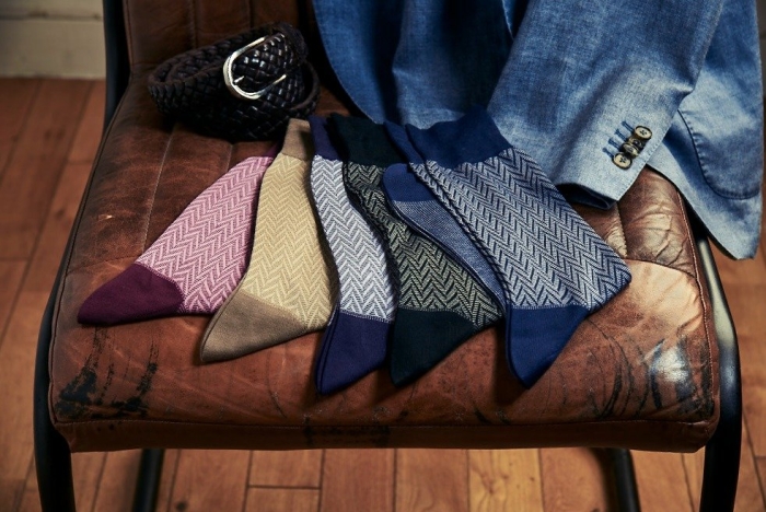 西村さんが立ち上げた同社の高級靴下ブランド「idé homme」の商品。工場閉鎖から新ブランドの立ち上げで再起するまでの軌跡は、月刊「理念と経営」2023年2月号に掲載
