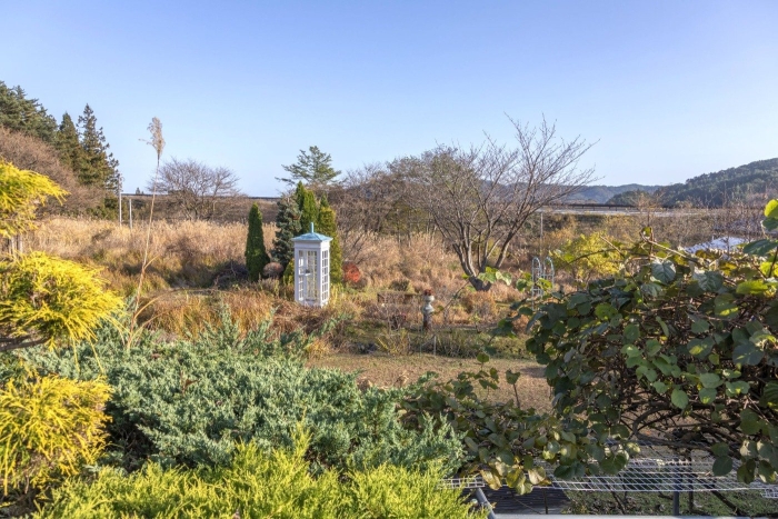 それができる場所が岩手県大槌町にある。三陸海岸の名勝の一つ浪板海岸を望む鯨山の中腹、佐々木格さんの広い庭の一画に置かれている「風の電話」である。緑のとんがり屋根と白い格子の電話ボックスの中にはダイヤル式の黒電話がある。だが、その電話線はつながっていない。