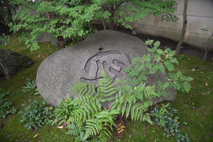 寂庵に置かれた「寂の石」。「寂」の字は書道家・榊莫山氏が書いたものだ